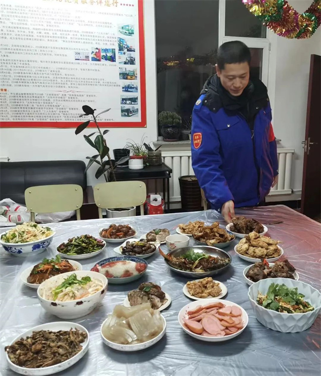 除夕夜,109路車隊為當班駕駛員精心準備了年夜飯,車隊長與駕駛員們歡聚一堂,共度佳節(jié),讓駕駛員們感受到大家庭的溫暖。