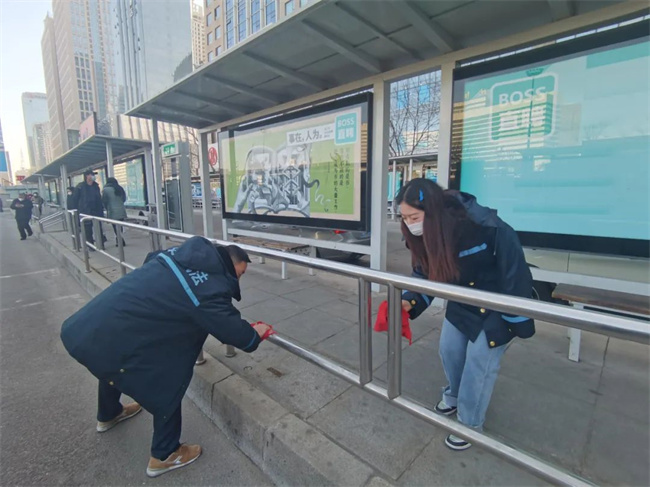 活動(dòng)中,志愿者們?yōu)閬?lái)往旅客指引方向,送上熱飲,并拿起掃把、鐵鍬等工具對(duì)垃圾、落葉等進(jìn)行清掃、分裝、清運(yùn),對(duì)公交護(hù)欄、電子站牌等衛(wèi)生死角進(jìn)行全面清理,使樞紐站內(nèi)環(huán)境衛(wèi)生煥然一新。