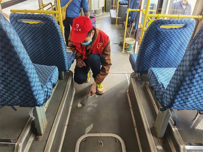 303路車隊(duì)組織職工對(duì)運(yùn)營(yíng)車輛的衛(wèi)生、辦公區(qū)域、休息室進(jìn)行了大清掃: