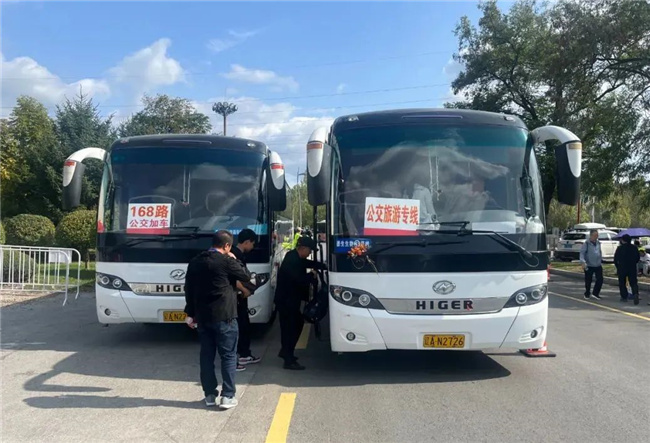 華龍公司開通公交旅游專線(沈陽北站至棋盤山景區(qū))和“沈水之陽 我心向往”秋韻情意濃“十一”旅游免費(fèi)直通車線路(沈陽市府廣場至祝家小鎮(zhèn)),為游客提供安全、舒適、便捷的乘車體驗(yàn)。
